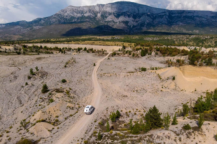 Der weg zu der Radarstation von dem ehemaligen unterirdischen Militärflughafen Željava.